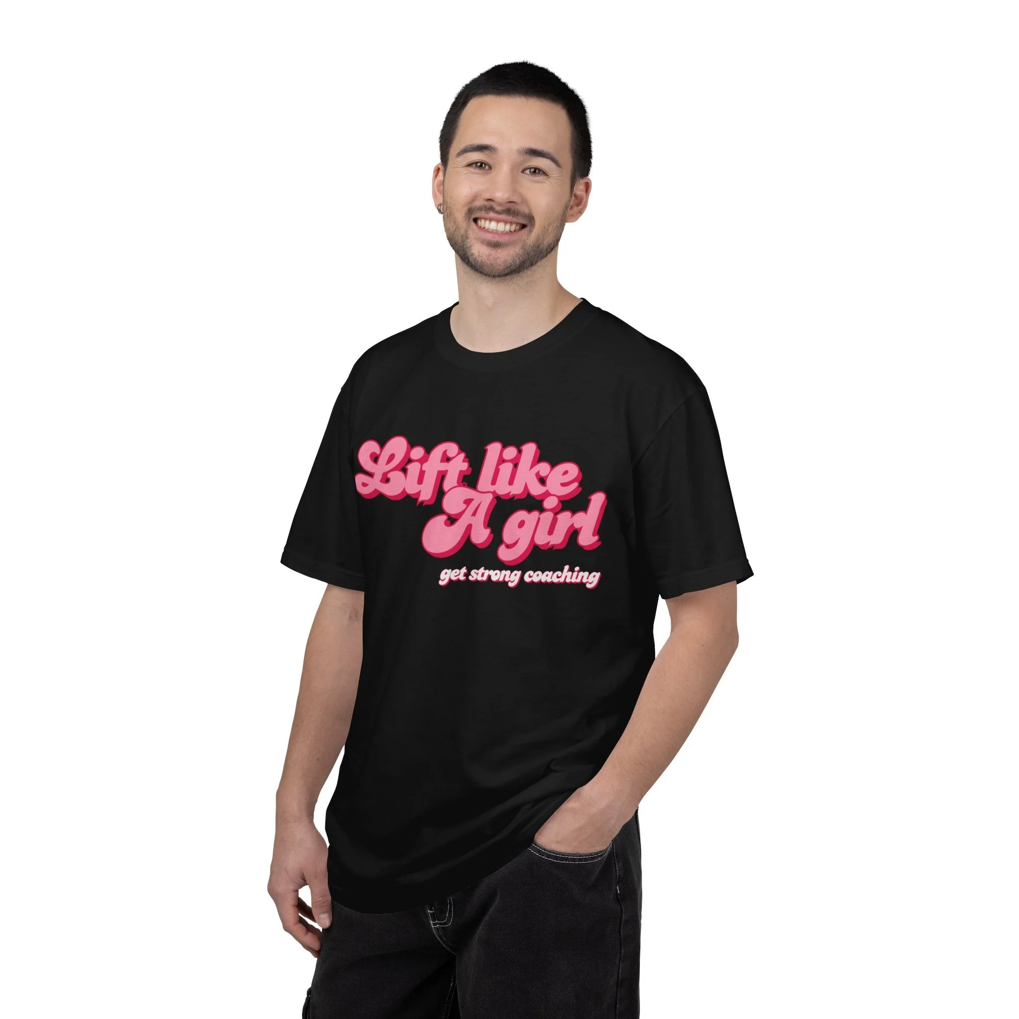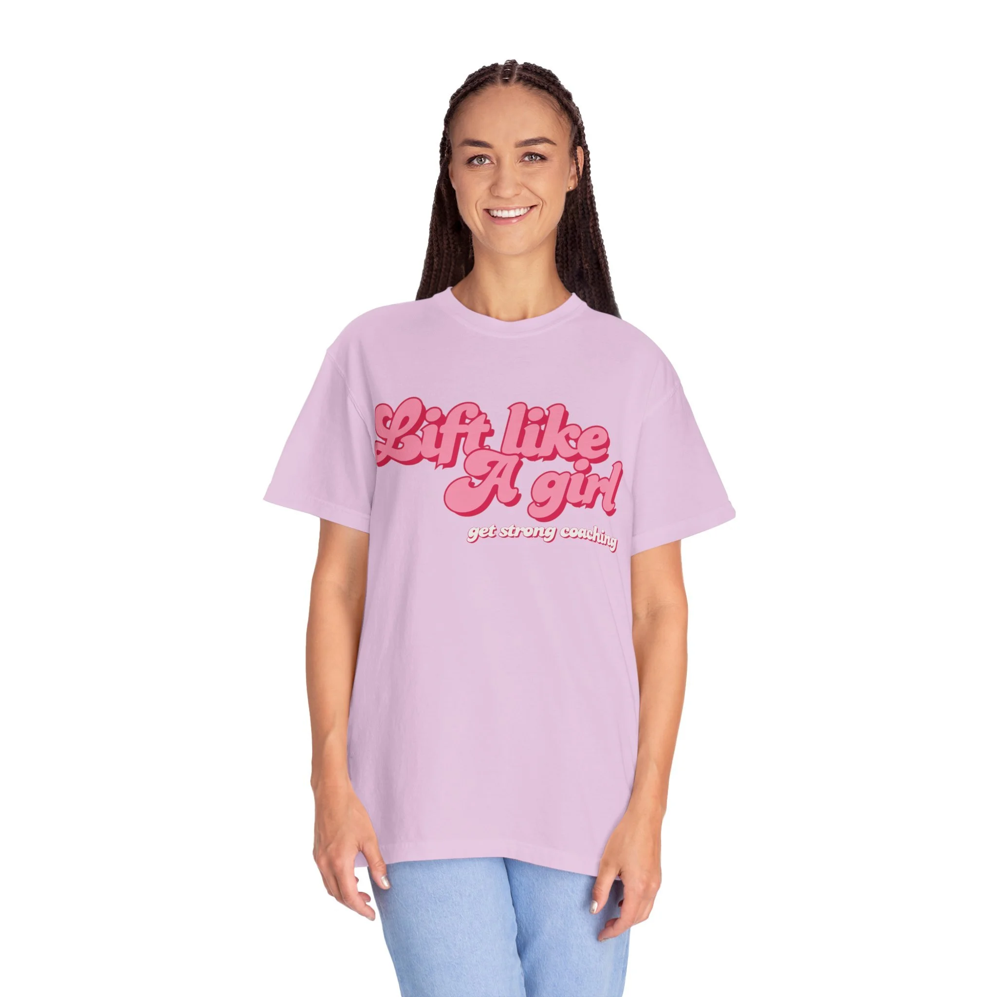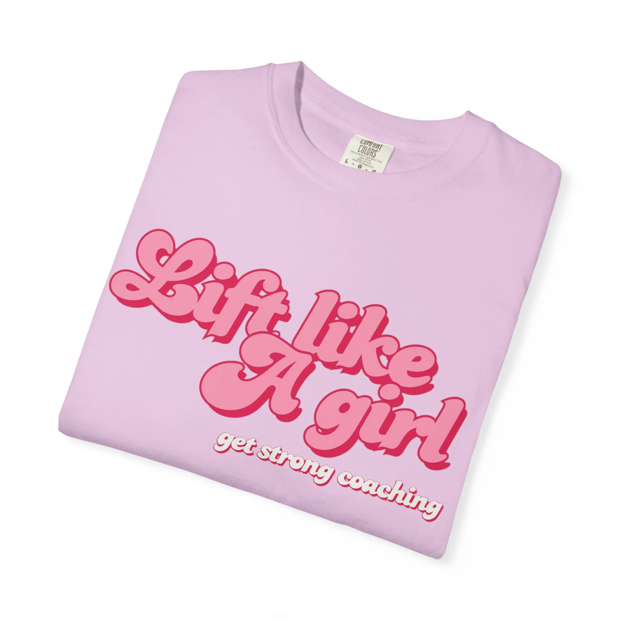 Soft, lived-in cotton and a bold, playful message come together in this relaxed tee. The garment-dyed fabric gives each shirt a muted, vintage wash and a buttery hand that feels broken-in from the first wear. Fronted with a bubbly, retro-style “Lift like a girl” graphic in warm pink tones, this shirt layers easily under a zip-up after a workout, pairs with high-waisted jeans for coffee runs, or slides on for an easy rest day. It’s for those who train with grit but keep their sense of humor — confident, unapologetic, and quietly fun.